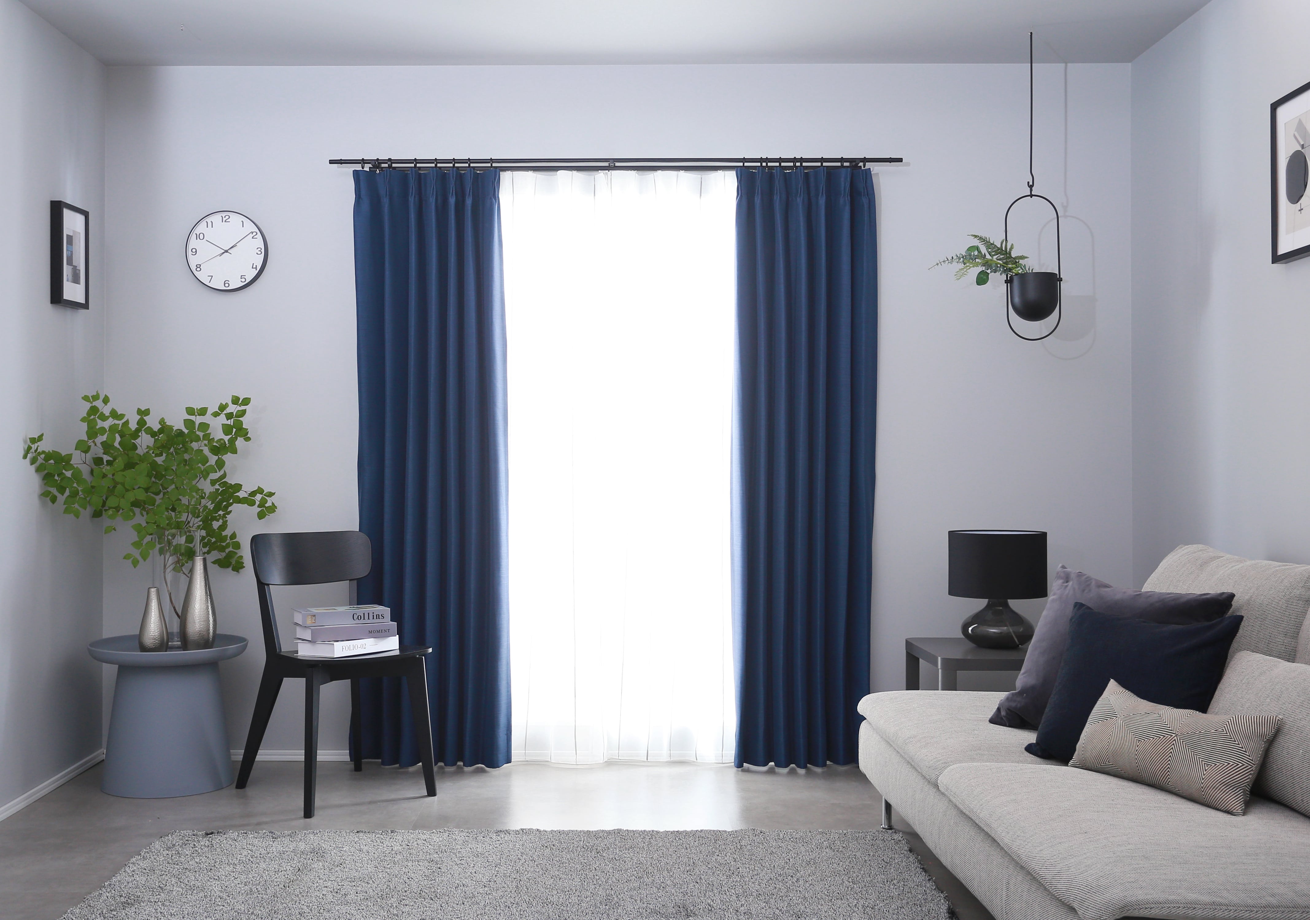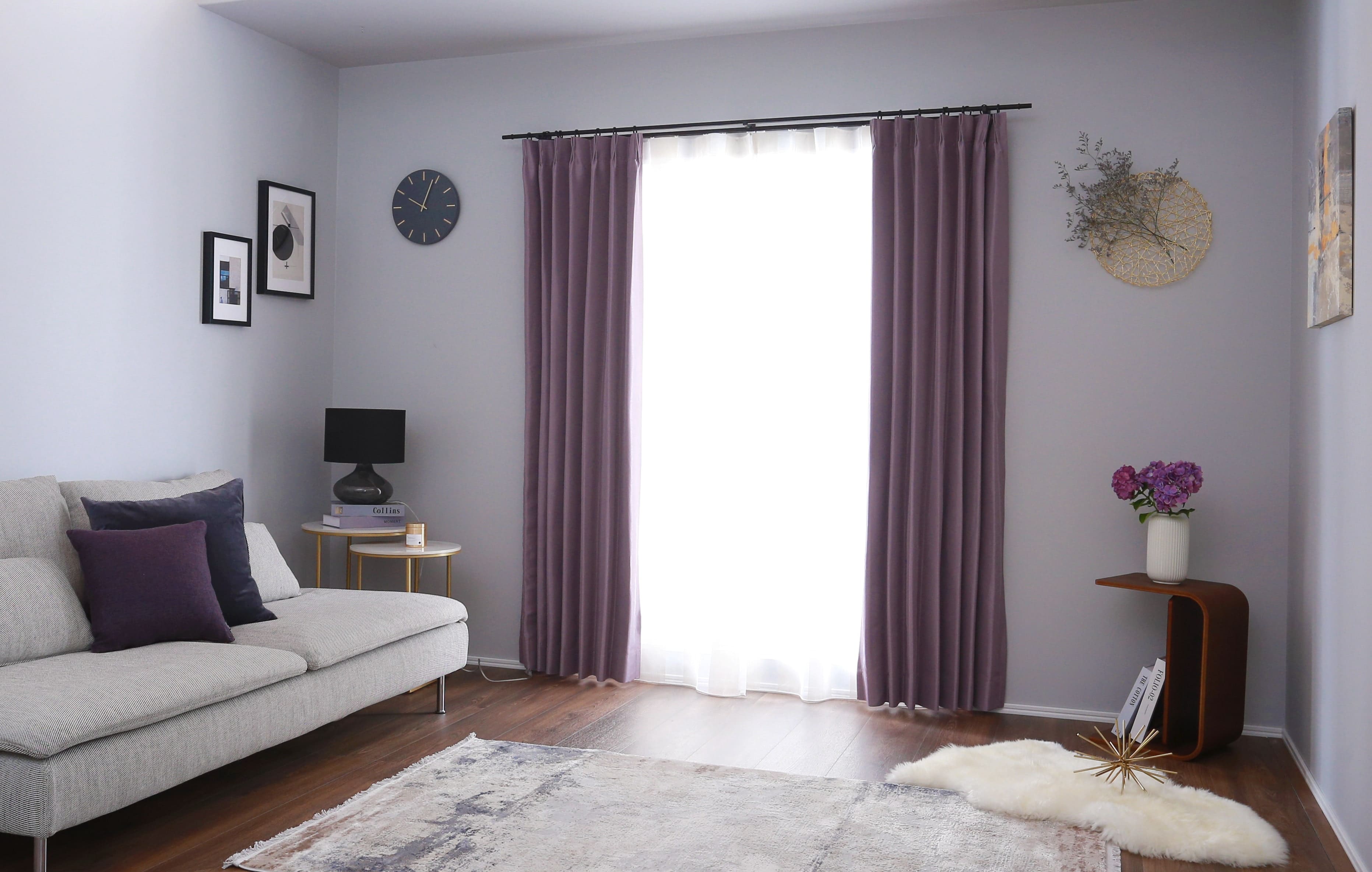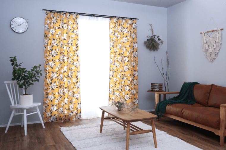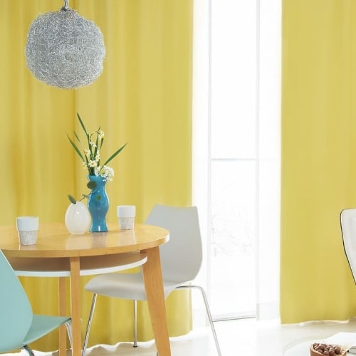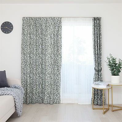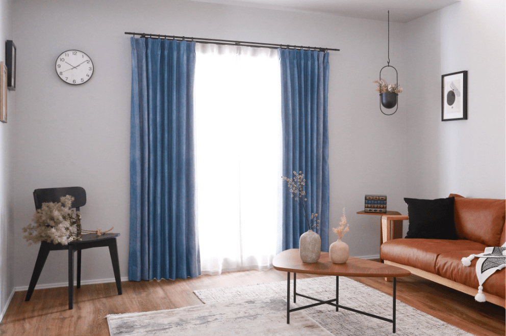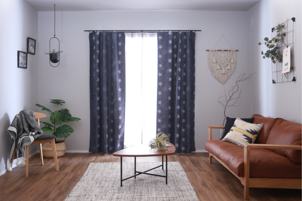 透過が少ないため色の濃淡がわかりやすく、お部屋にアクセントを加えるインテリアとして使用しやすいカーテン。