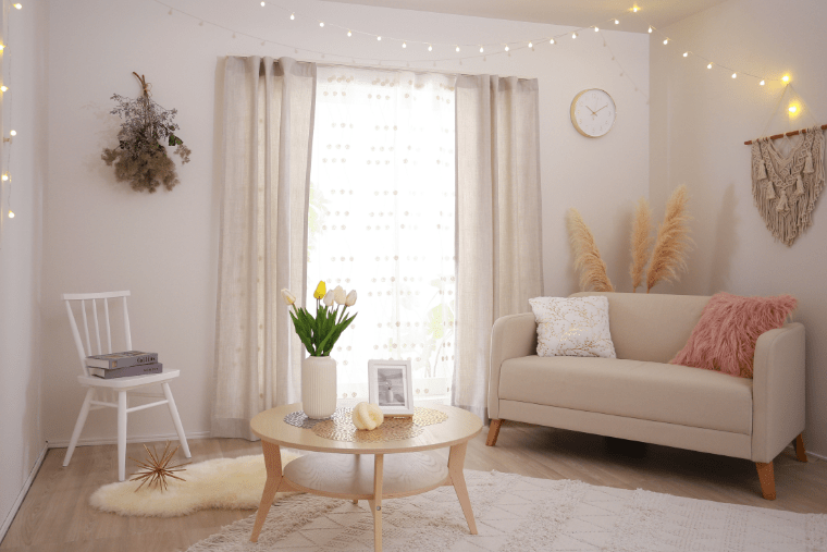 軽やかで日差しを透過させる透け感が魅力のカーテン。