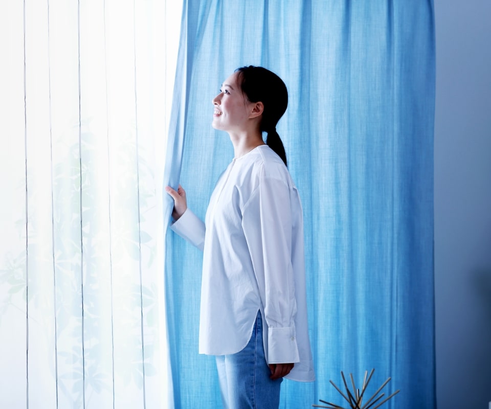 見た目の美しさだけでなく、厚手のカーテンと合わせることでその日の気温や日差しに合わせて対応できたり、昼間には外からの視線を遮れるなど柔軟な機能性があることも魅力の1つです。