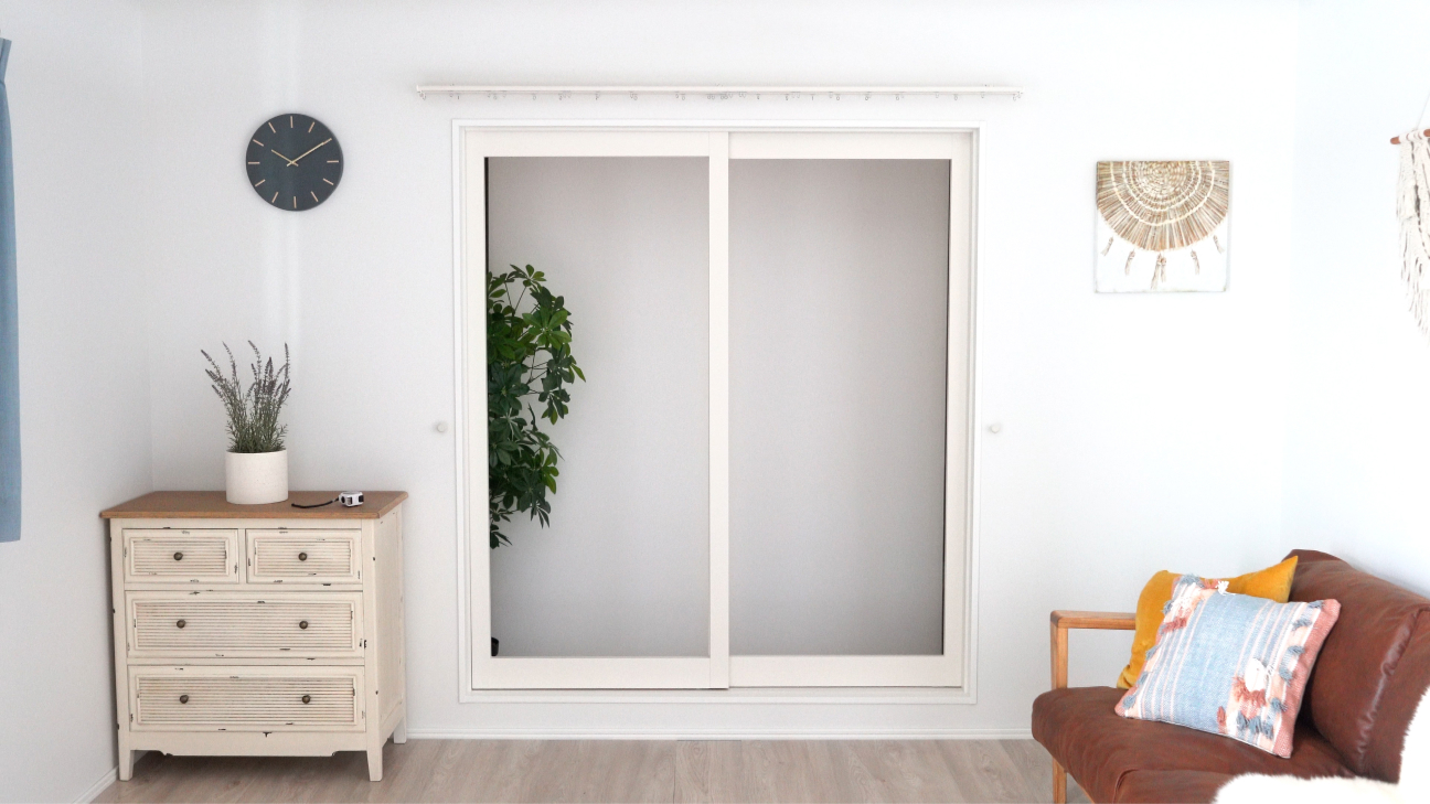 室外から見えづらいミラーレースを採用した、美しいレースカーテンです。