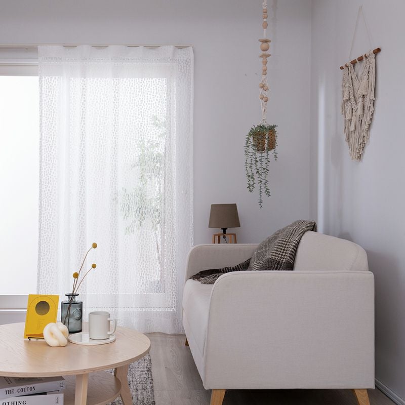 ランダムな四角柄が配置された個性的なようで馴染みの良いレース。モダンやナチュラルなインテリアにもマッチ。